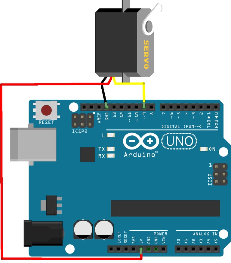 Оранжевый провод (сигнал) подключите к цифровому пину 9 на Arduino.