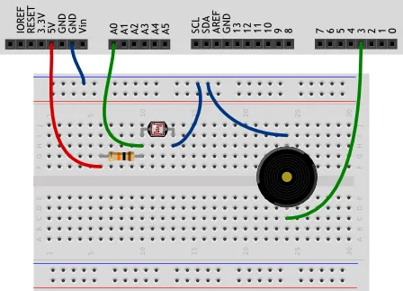 В этом эксперименте мы имитируем действие музыкального инструмента терменвокс: изменяем высоту звучания бесконтактным путем, больше или меньше закрывая от света фоторезистор. Оригинальный инструмент был изобретён ещё в 1920 году, Львом Сергеевичем Терменом, человеком с непростой и насыщенной судьбой. А сейчас мы имеем возможность воспроизвести изобретение с помощью нехитрой электроники.