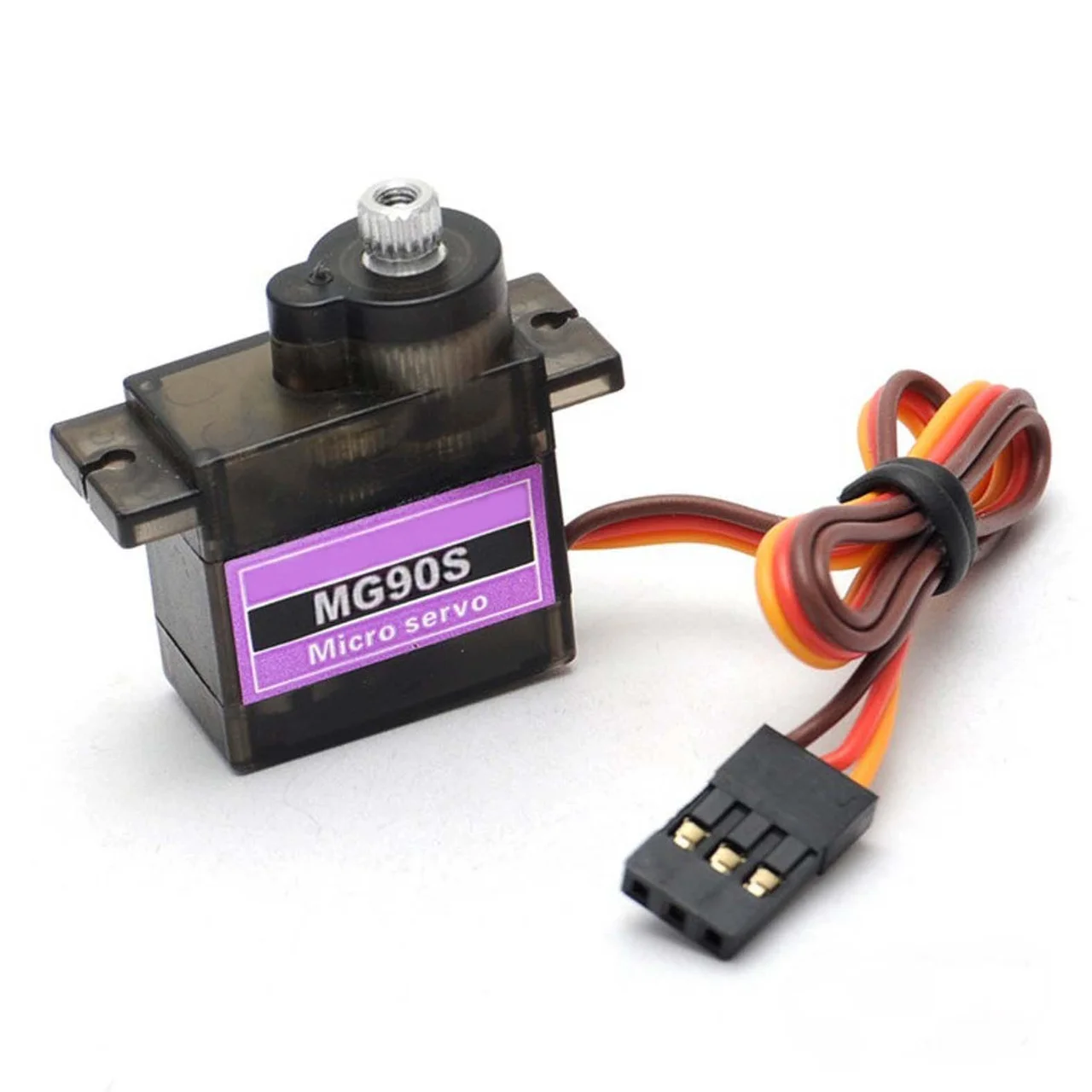 Сервоприводы имеют три провода: коричневый (GND), красный (VCC), оранжевый (сигнал). Цвета могут отличаться в зависимости от бренда.