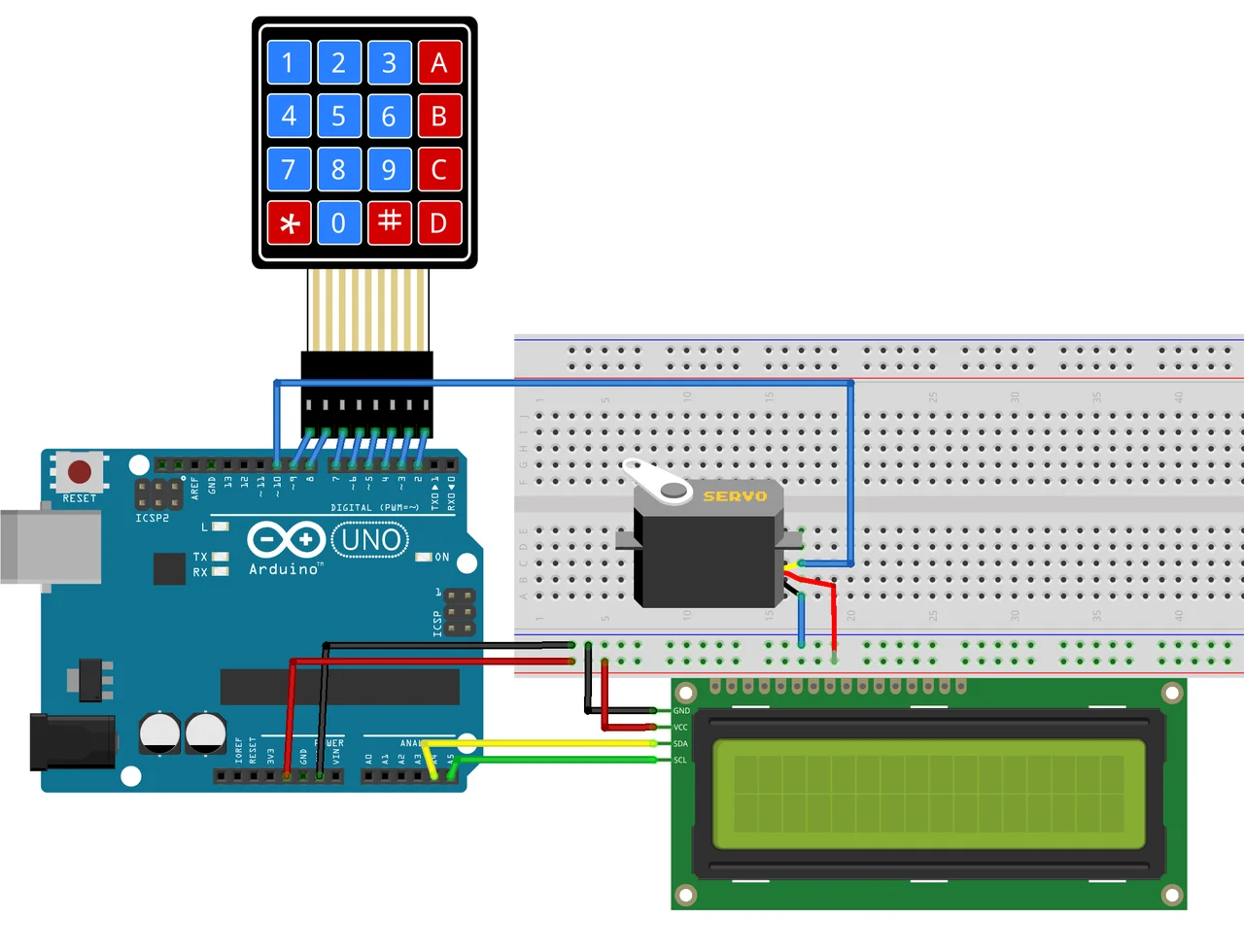 В эпоху цифровых технологий и автоматизации все больше людей интересуется созданием умных устройств для повседневного использования. Одним из таких устройств является умный замок, управляемый с помощью матричной клавиатуры и сервопривода, с отображением введенного кода на дисплее LCD1602. В данной статье мы рассмотрим, как создать такой замок, используя Arduino и популярные библиотеки для работы с клавиатурами и дисплеями.