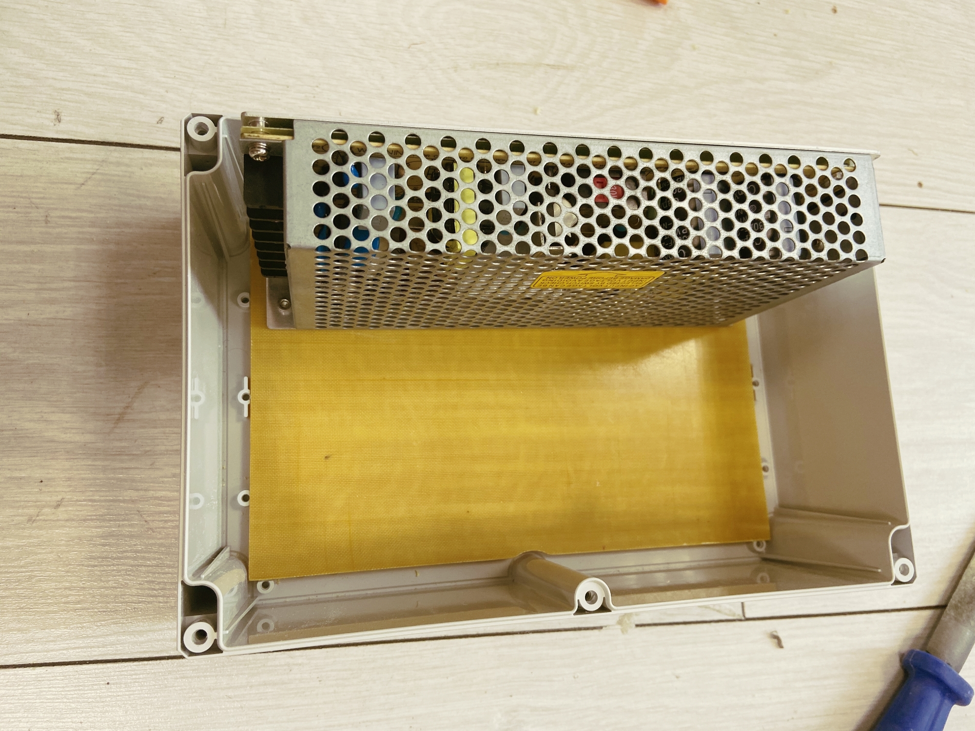 В корпусе мы разместили текстолитовую подложку, а на ней закрепили все электронные компоненты.
