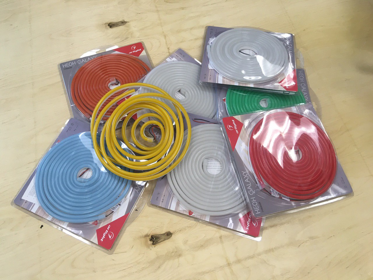 Всего мы приобрели несколько катушек неона разной длины со свечением разных цветов:
