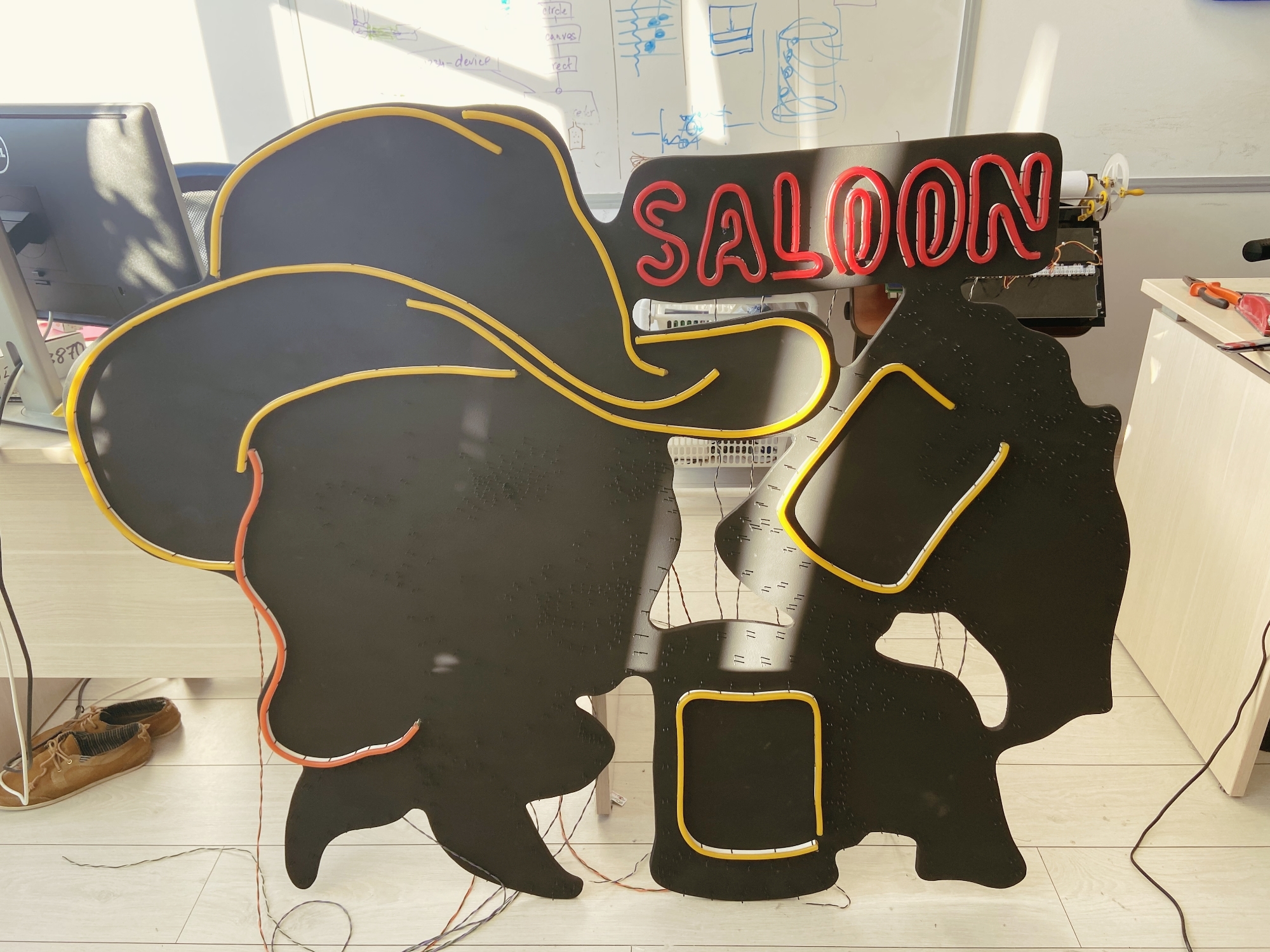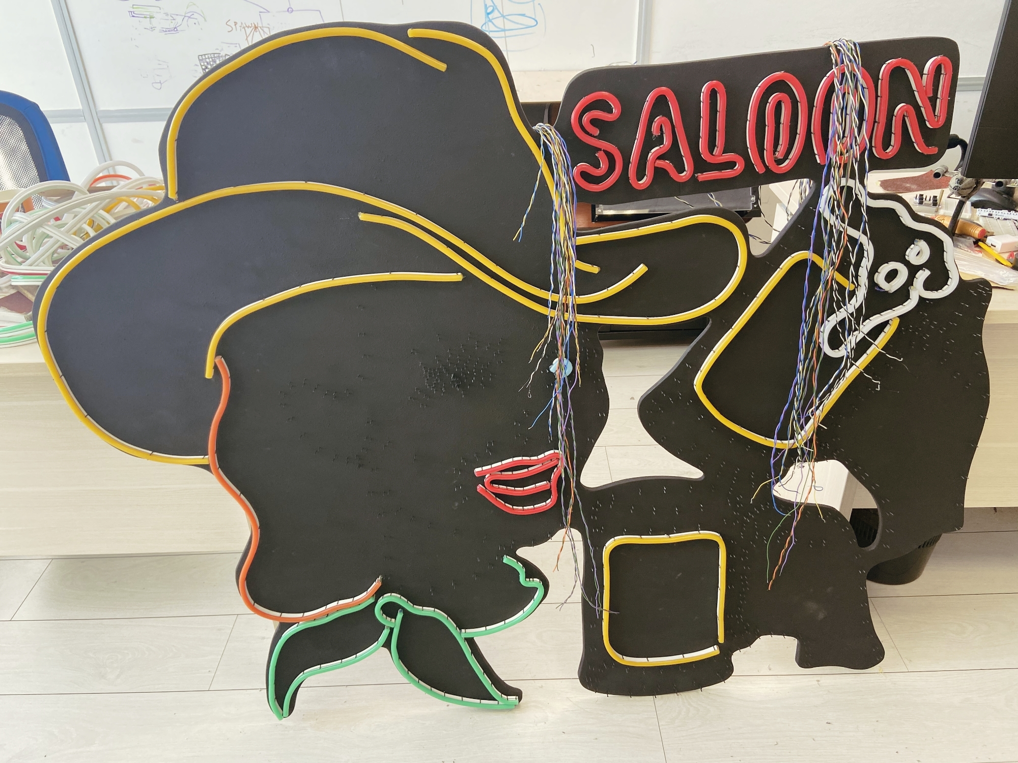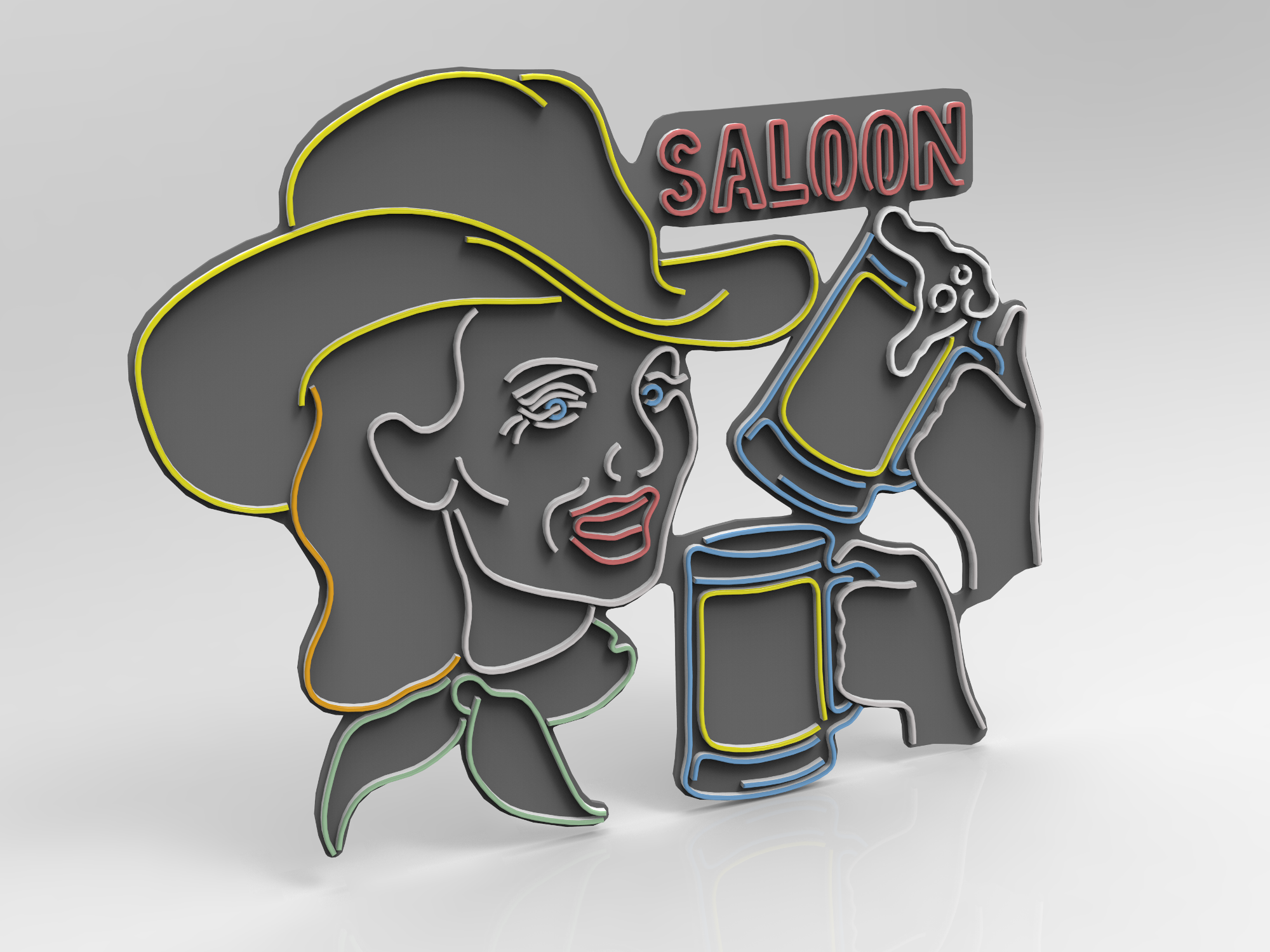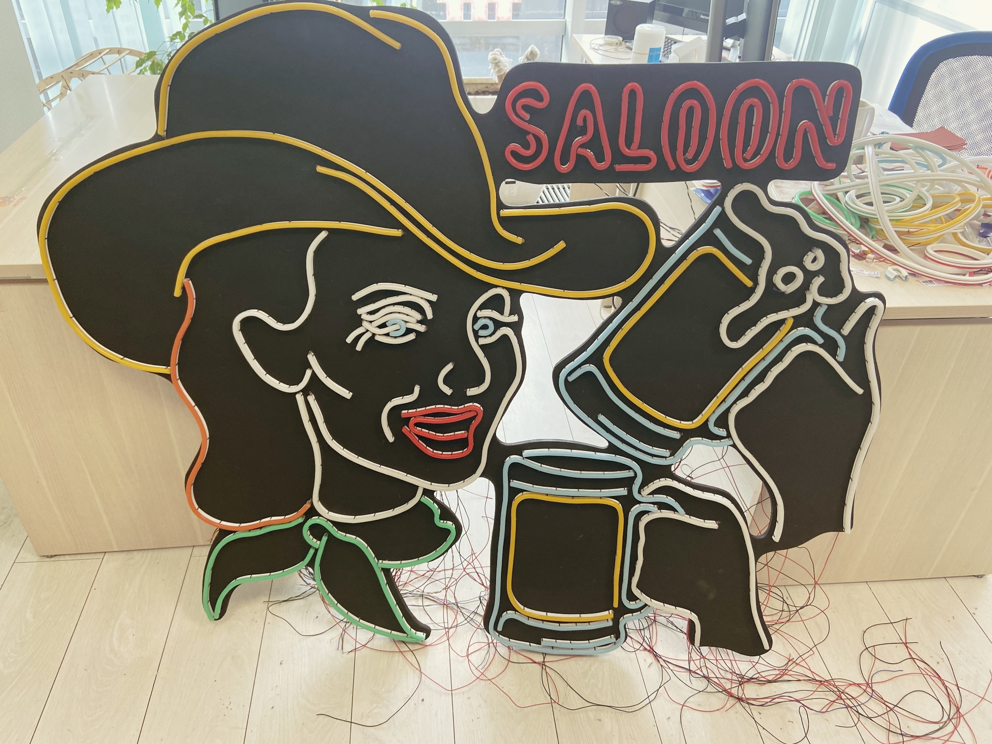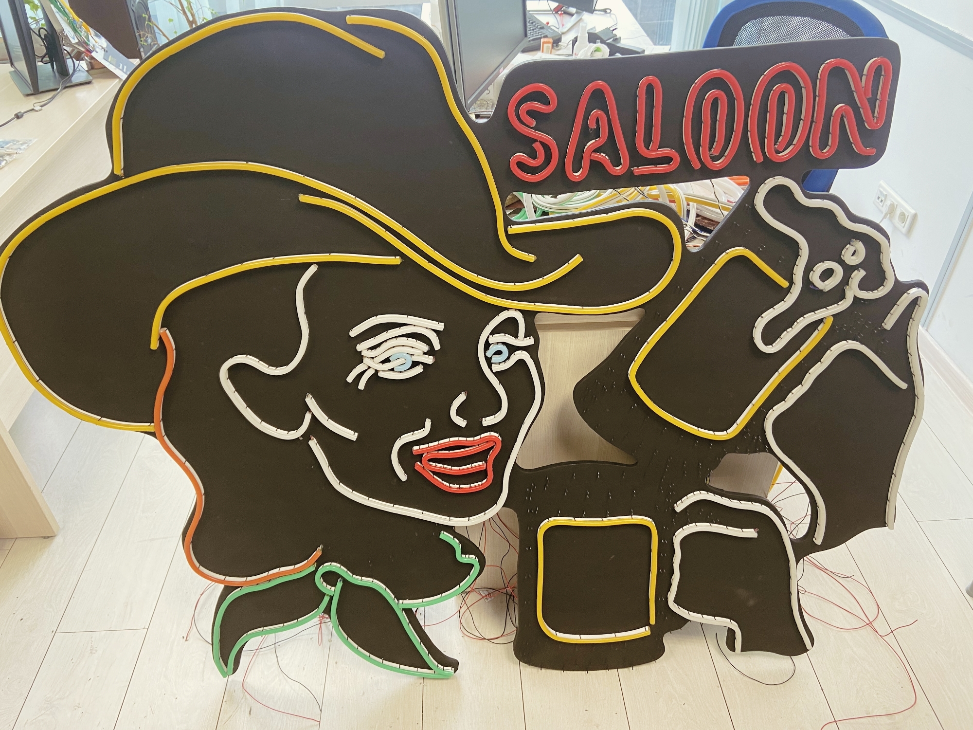 Мы решили сделать свою неоновую вывеску в духе старых времён. Было решено, что на вывеске будет неоновая ковбойша, рекламирующая пивной паб. Также мы решили добавить на вывеску какую-нибудь анимацию и управлять ею при помощи Arduino.