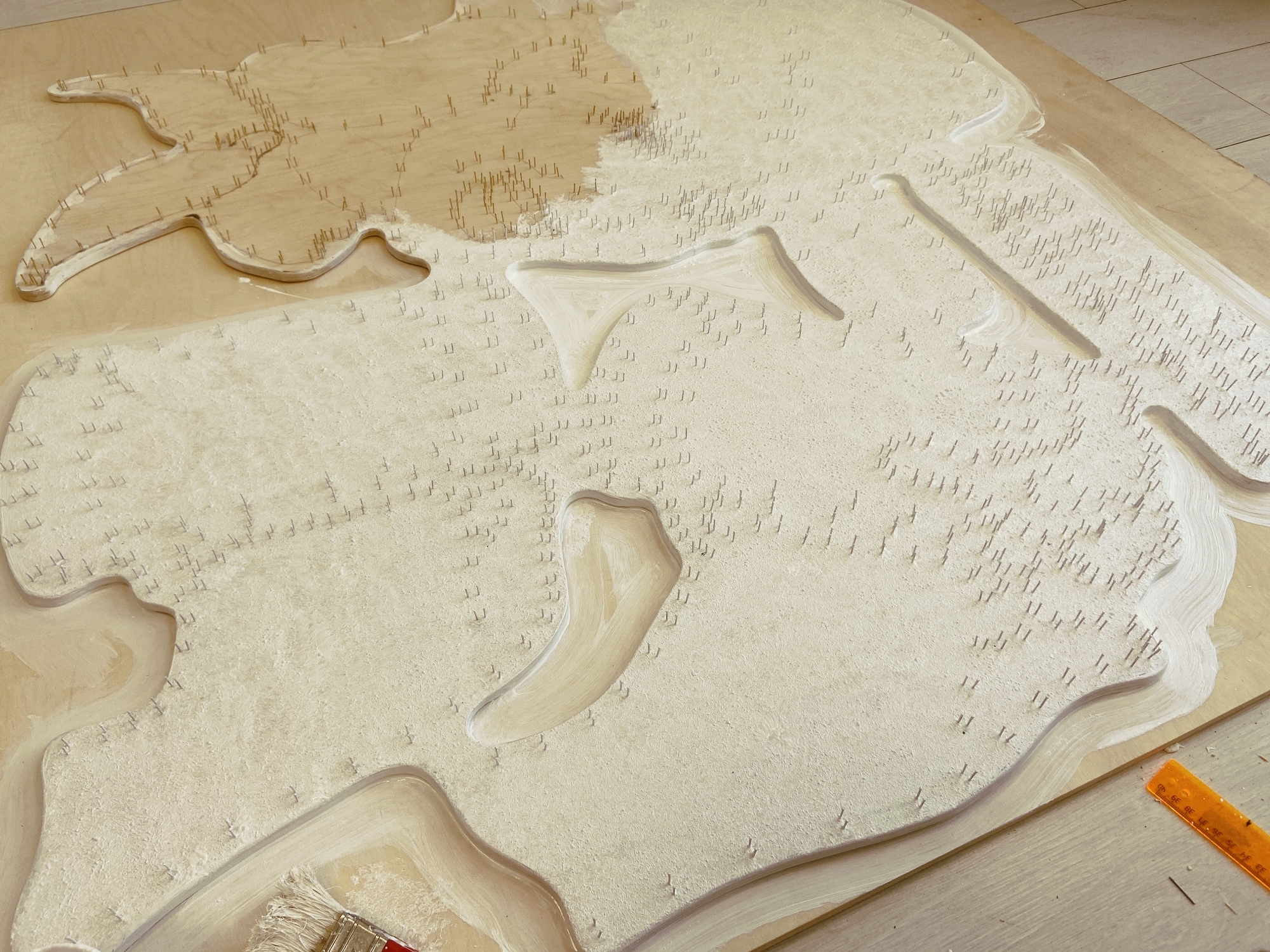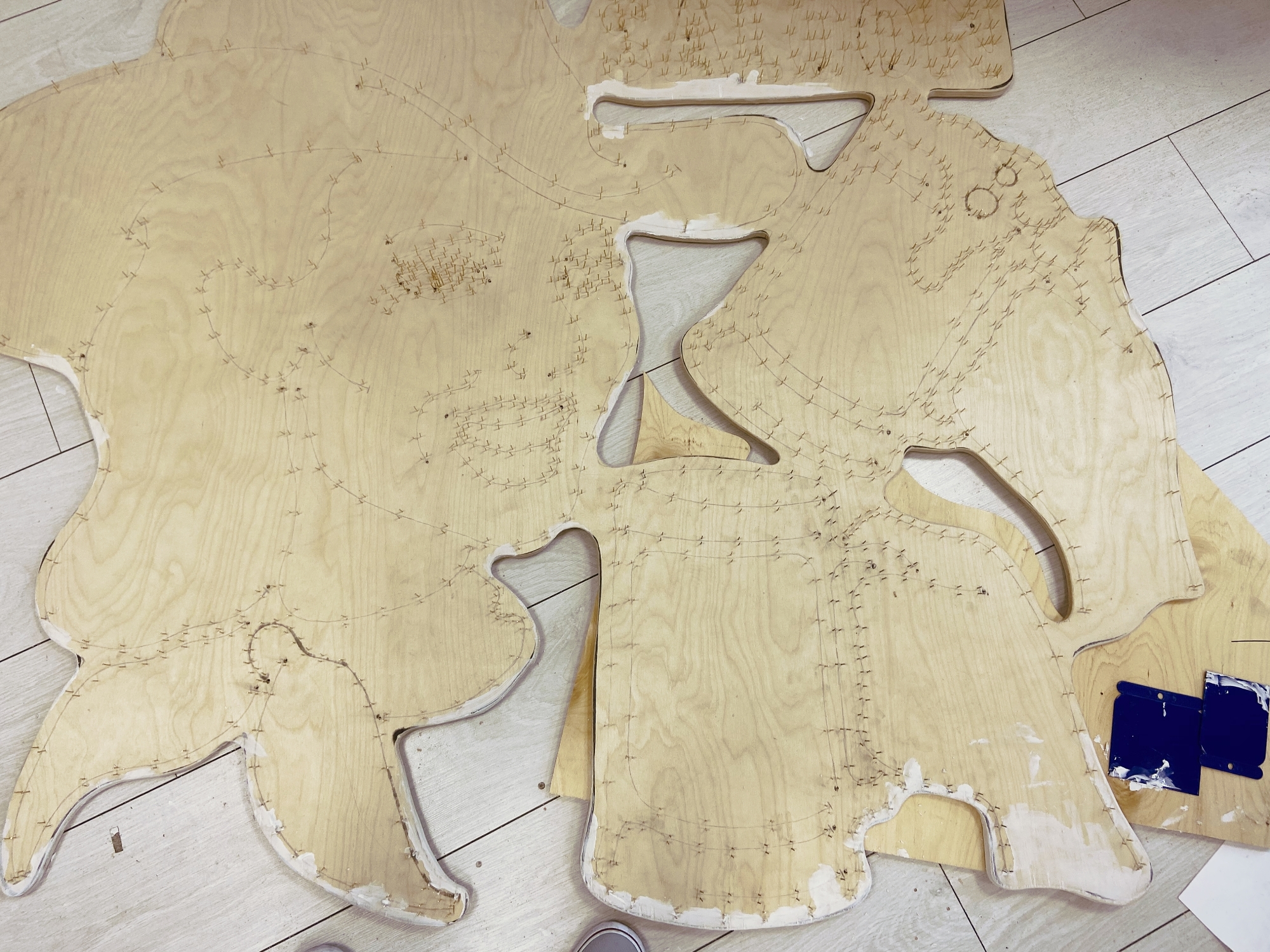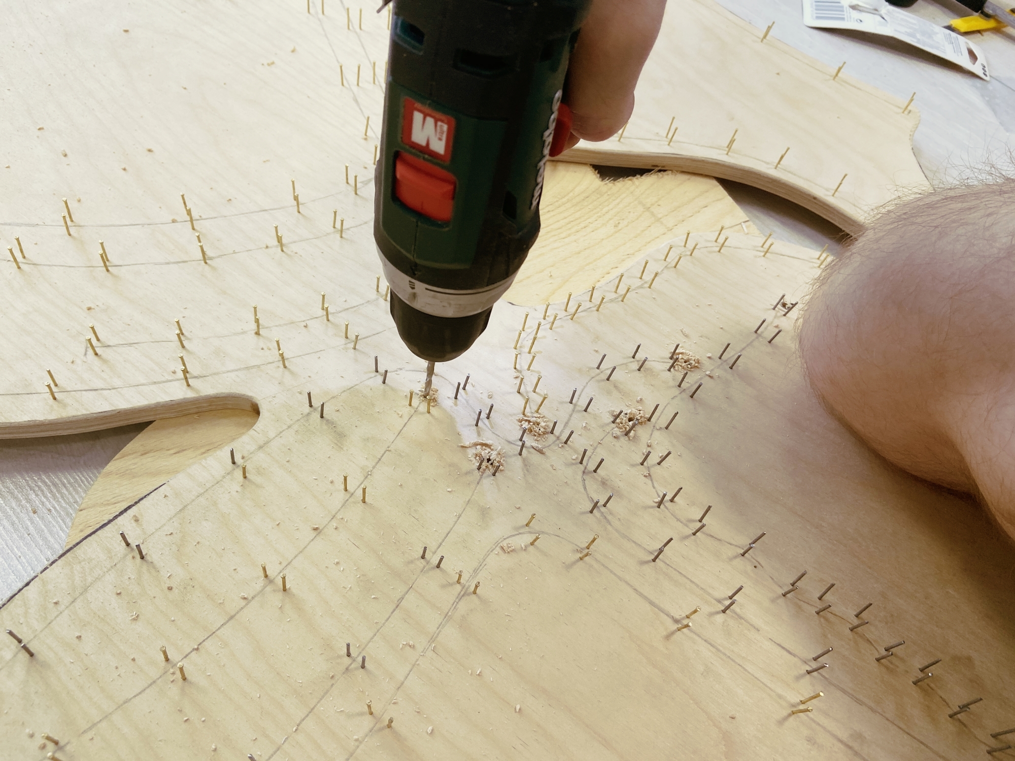 Мы спроектировали довольно крупную вывеску, поэтому нам пришлось вбить около тысячи гвоздей. Довольно рутинная задача, так что обязательно придумайте, как развлечь себя в процессе.