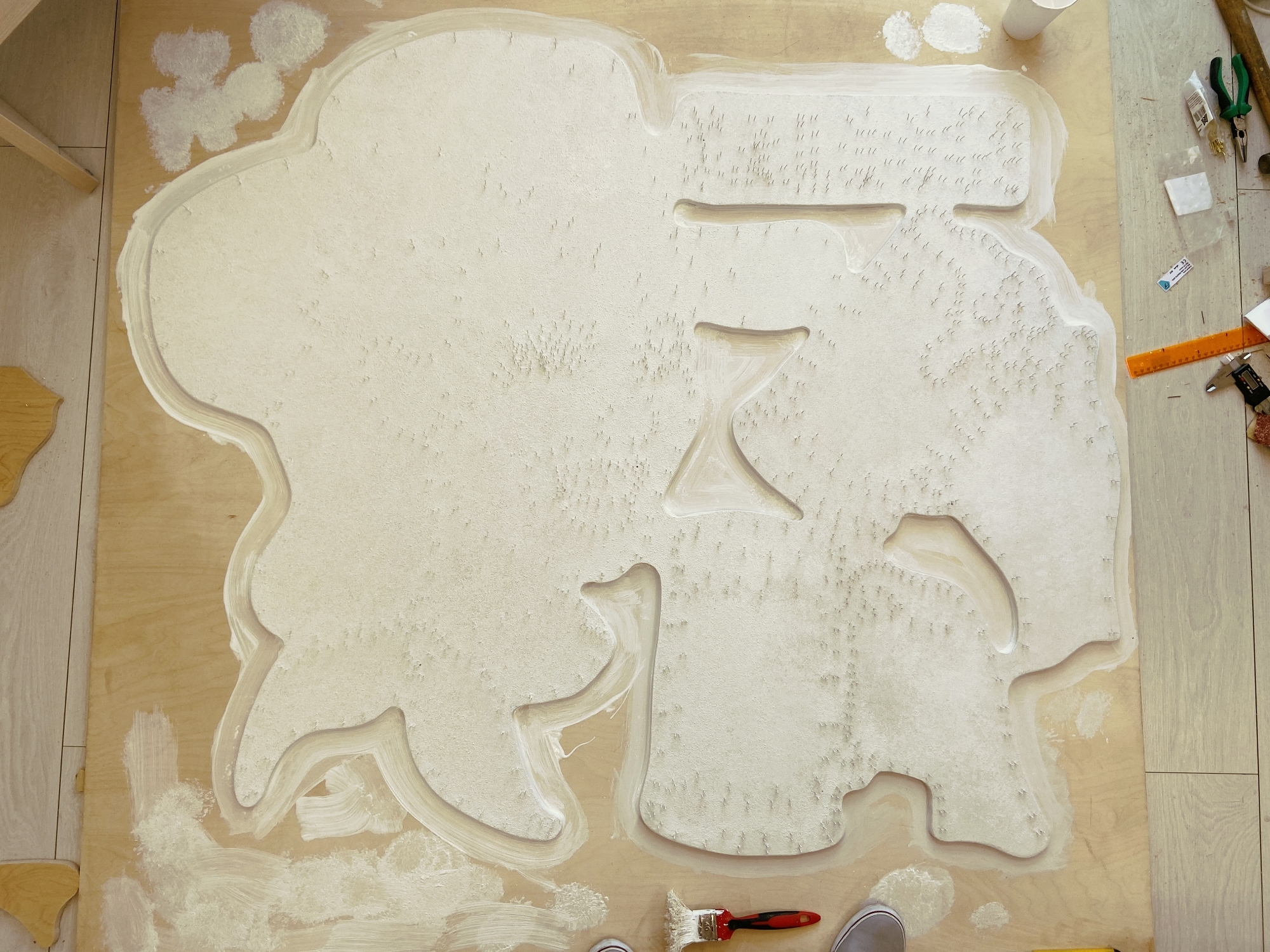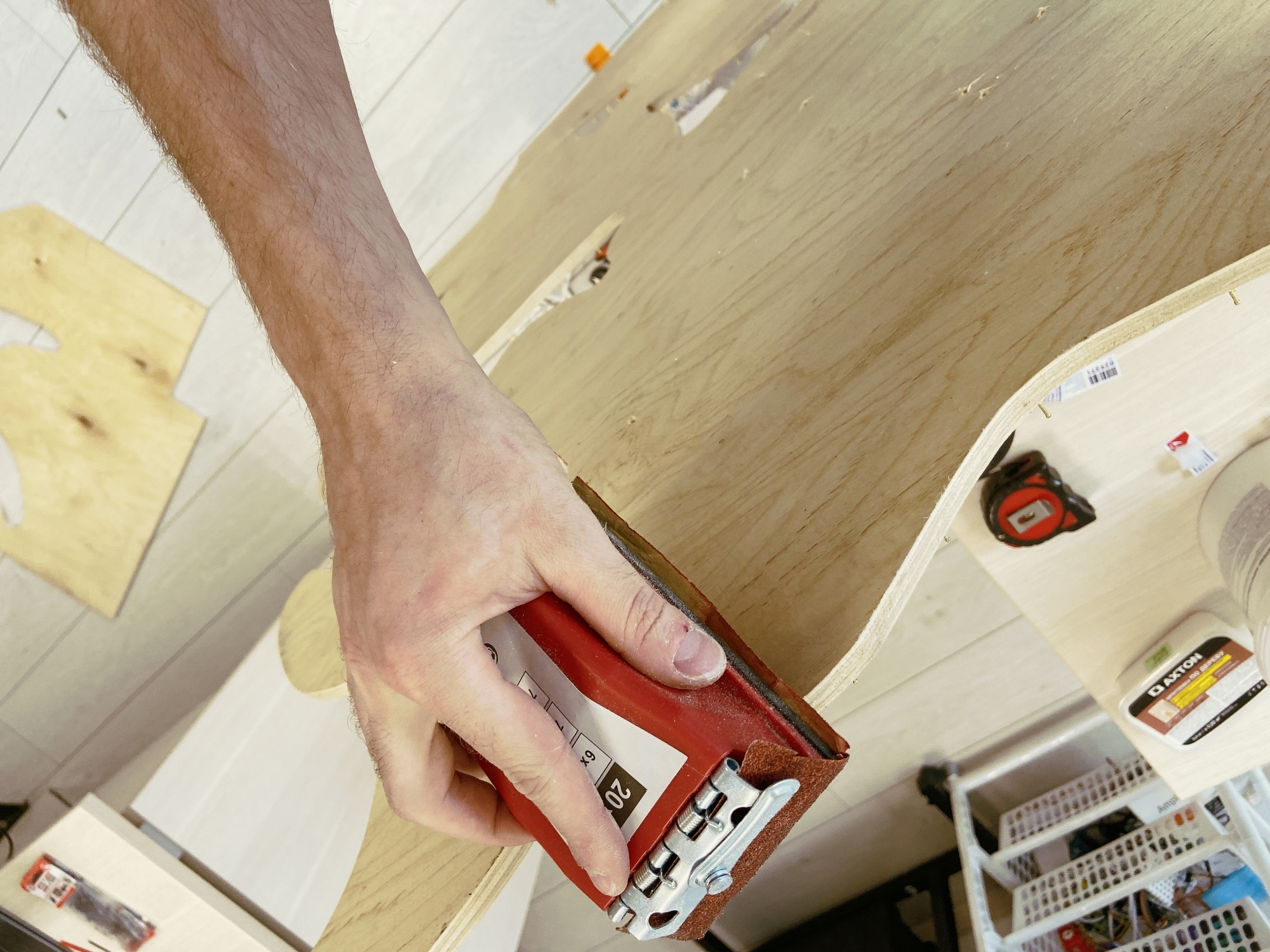Если на вашей основе есть сколы или неровности — самое время их исправить. Мы обработали края основы рашпилем, наждачкой и замазкой по дереву.