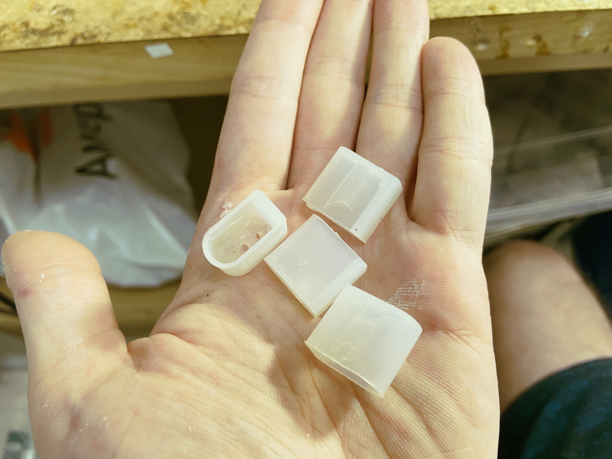 Можно использовать стандартные силиконовые колпачки-заглушки. Такие заглушки, скорее всего, можно найти там же, где и катушки с гибким неоном.
