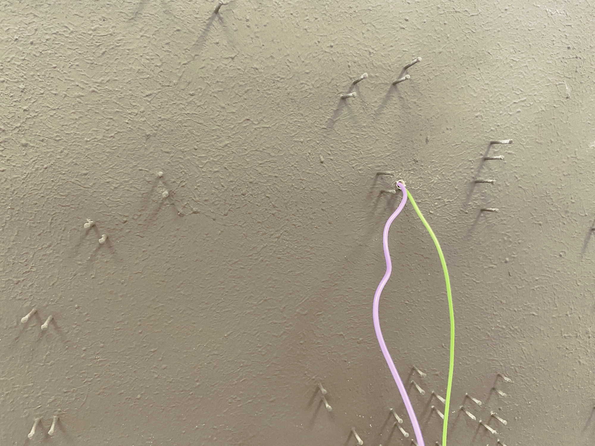 Установите все неоновые отрезки и надёжно зажмите их между гвоздей. Вытаскивать неон больше не потребуется.