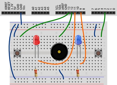 В этом эксперименте мы создаем игрушку на реакцию: кто быстрее нажмет кнопку по сигналу.