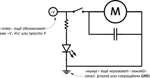 То, что соединено линией, в реальности должно быть соединено проводником.
