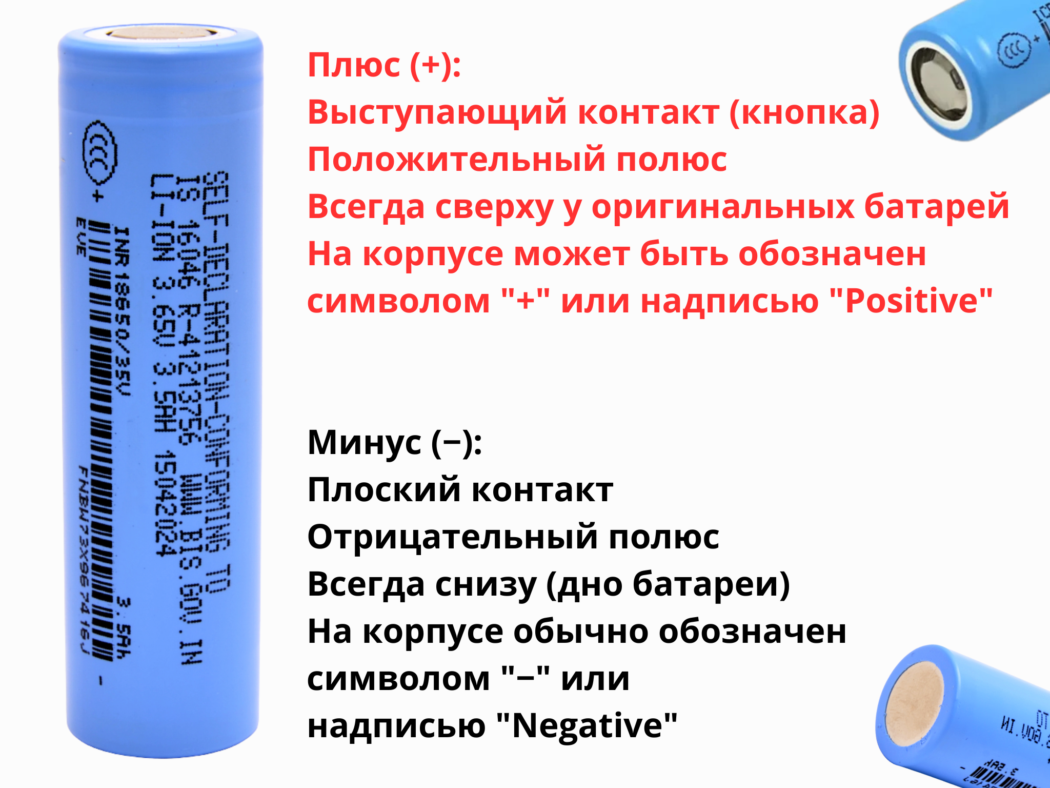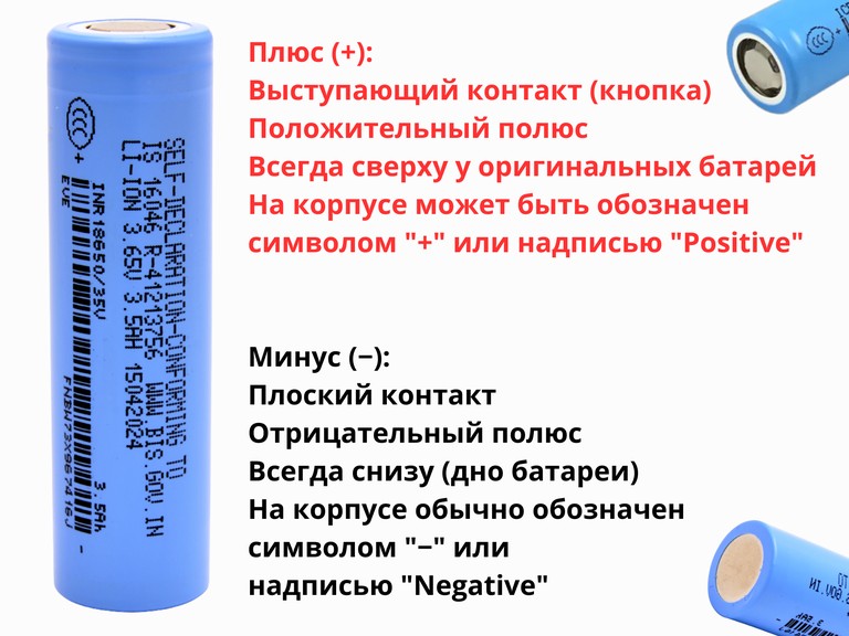 Плюс (+) на выступе батареи