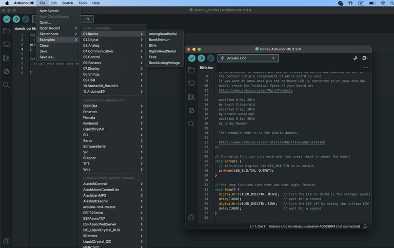 Поэкспериментируйте с примерами из установленных библиотек (File → Examples)
