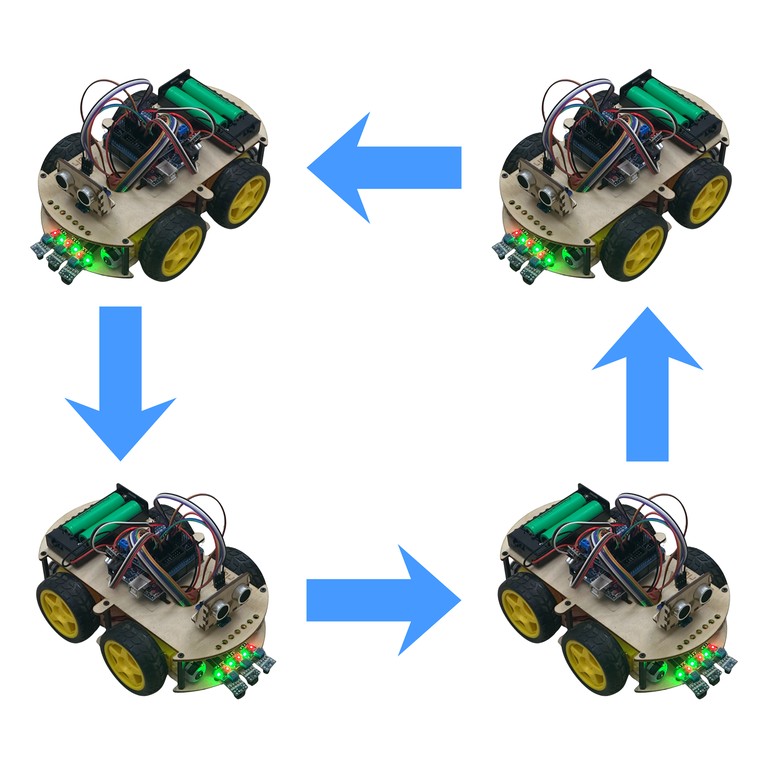 Робот проедет квадрат и вернётся примерно на старт (±10-20 см — норма для таймеров)