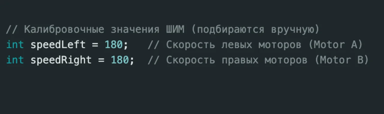 int speedRight = 180; // Скорость правых моторов (Motor A)