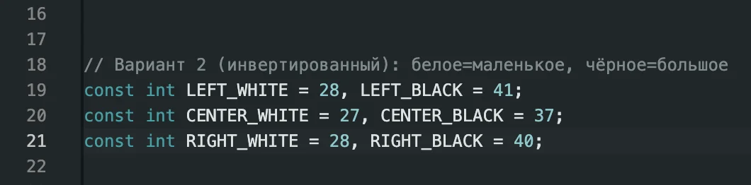 const uint8_t RIGHT_SENSOR = A2; // Правый датчик