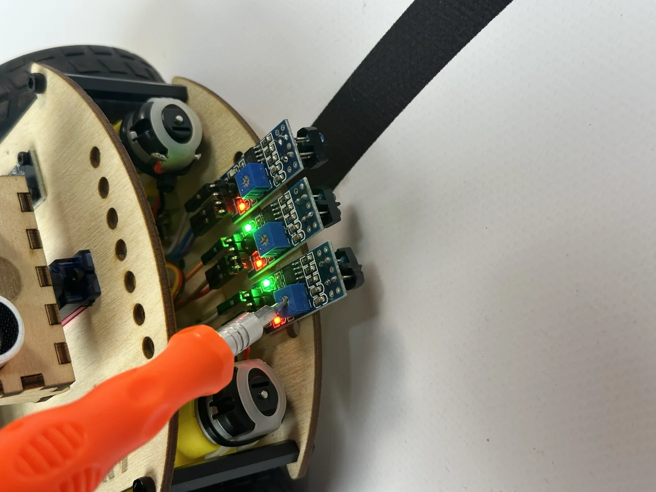 Шаг 4: Подвиньте робота так, чтобы датчики оказались над чёрной изолентой