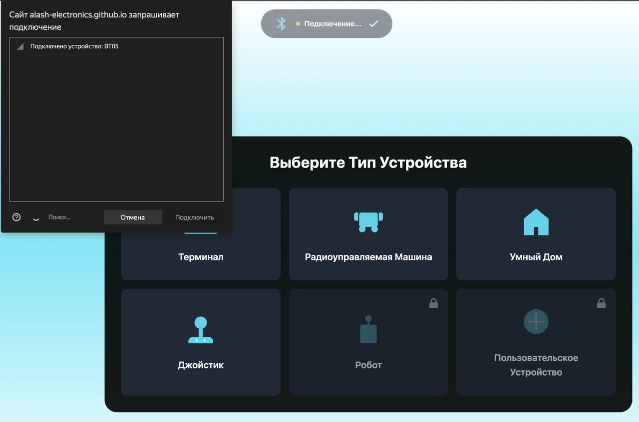 Ссылка: https://alash-electronics.github.io/bluetoothWebApp/