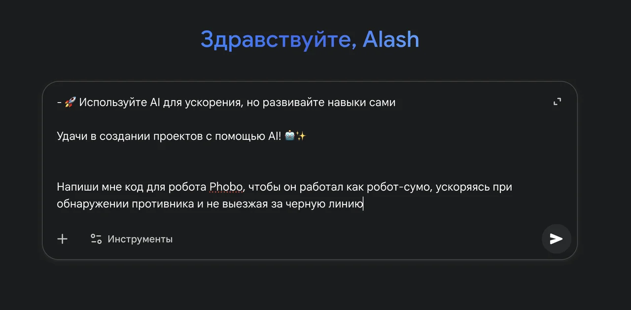 Поздравляем! Теперь у вас есть **полный промпт** для работы с AI помощниками при программировании робота Фобо.