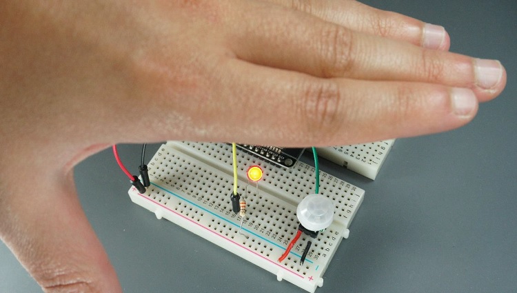 В нашем примере мы использовали PIR-датчик движения для запуска прерывания. Но представленный пример также можно использовать для обнаружения нажатия кнопки, например.