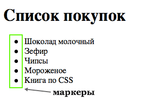 Как видите, маркеры как бы идут по внешней стороне списка.