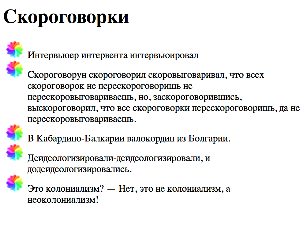 А что если нам не подходит ни один из стандартных типов маркеров? Мы можем задать свой - с помощью list-style-image. Например, представим, что мы хотим вот такой маркер: