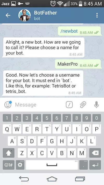 bot.sendMessage (chat_id, str("Hi! MakerPro"))