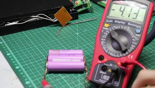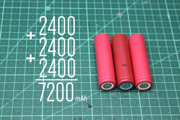 Перед этим каждый из 3 элементов следует зарядить до 4,2 вольта отдельно, поскольку параллельное соединение литиевых элементов с различным уровнем заряда (разным напряжением) очень опасно. Проще всего обезопасить себя — зарядить все элементы до конца перед их объединением.
