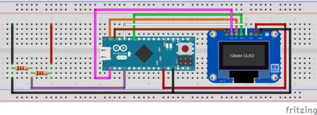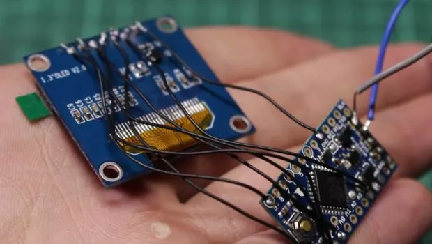 Для реализации нужно припаять OLED-дисплей к Arduino. Наш OLED-модуль — версия SPI, поэтому к Arduino подключаются 7 контактов.