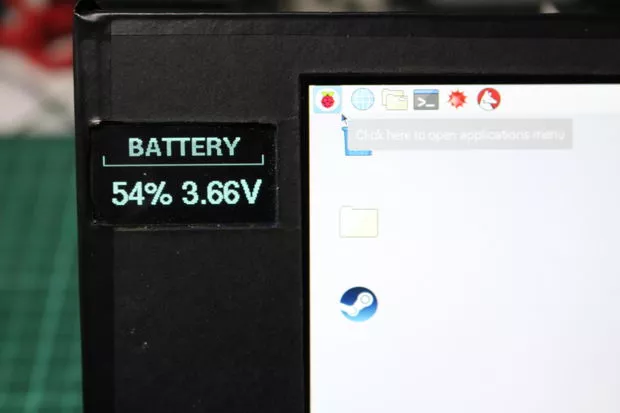 Переходим к дисплейной части — она состоит из двух компонентов: основного экрана и индикатора заряда батареи. Для основного экрана нужно лишь подключить 50-контактный ленточный кабель к дисплею и к соответствующему разъёму на Raspberry Pi.
