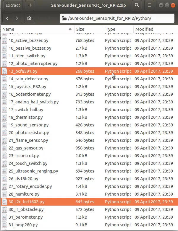Для вывода текущей температуры на дисплей создайте новую папку, к примеру «LCDTemp», и перенесите в неё два выделенных на рисунке файла из каталога с кодом SunFounder. Это библиотеки, предназначенные именно для оборудования из набора SunFounder Kit (совместимость с другими датчиками не тестировалась).