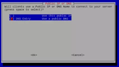 Определив степень шифрования, вы получите возможность выбрать между публичным IP-адресом и DNS-записью. Перейдите к варианту с DNS и нажмите Enter.