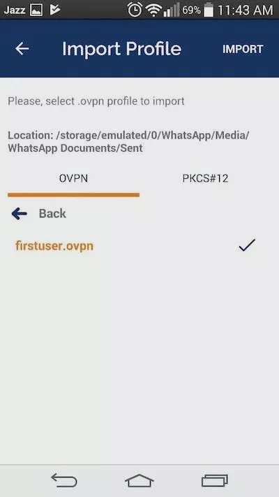 Перейдите в папку, куда был загружен файл клиента, и импортируйте его в OpenVPN. При загрузке файла приложение запросит пароль — введите тот, что был задан при создании пользовательского профиля.