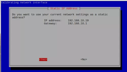 После этого будет запрошено разрешение на использование текущего IP-адреса и шлюза. Нажмите Enter на пункте yes для подтверждения.